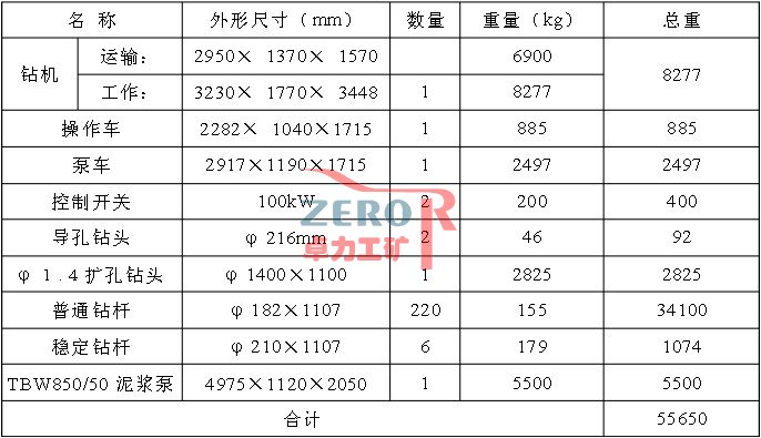 反井鉆機主要性能及參數(shù)