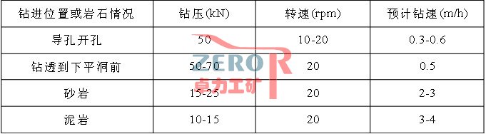 導孔鉆進參數(shù)選擇 表3-3